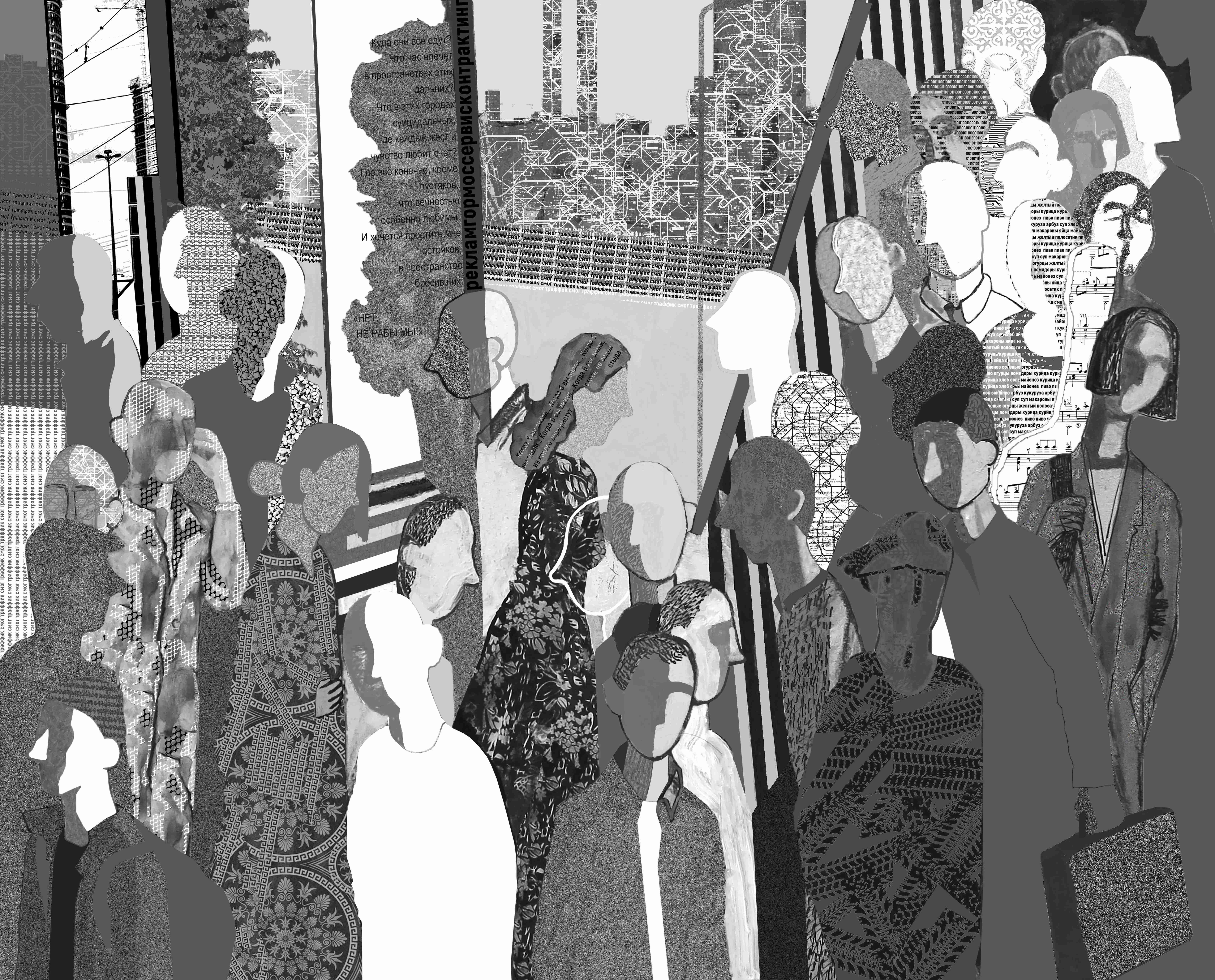 Серия выполнена в технике цифровой аппликации, наложенной на ручную графику, и напечатанной вручную в шелкографии. Главной идеей было рассказать о героях с помощью текстурно-информационного наполнения, не прорисовывая характеристики и портреты персонажей, но обнажая их мысли, внутренний мир. Из чего мы сделаны? Мне было интересно сопоставить образы как знаки, понаблюдать как они могут «уживаться» друг с другом, сделать из этого визуальное событие, сборник новелл слегка напоминающий убранистические текстуры. Название серии дала песня Виолы Мартинссон, «Made of». Из этой идейной концепции дальше был разработан графический пластический ход.