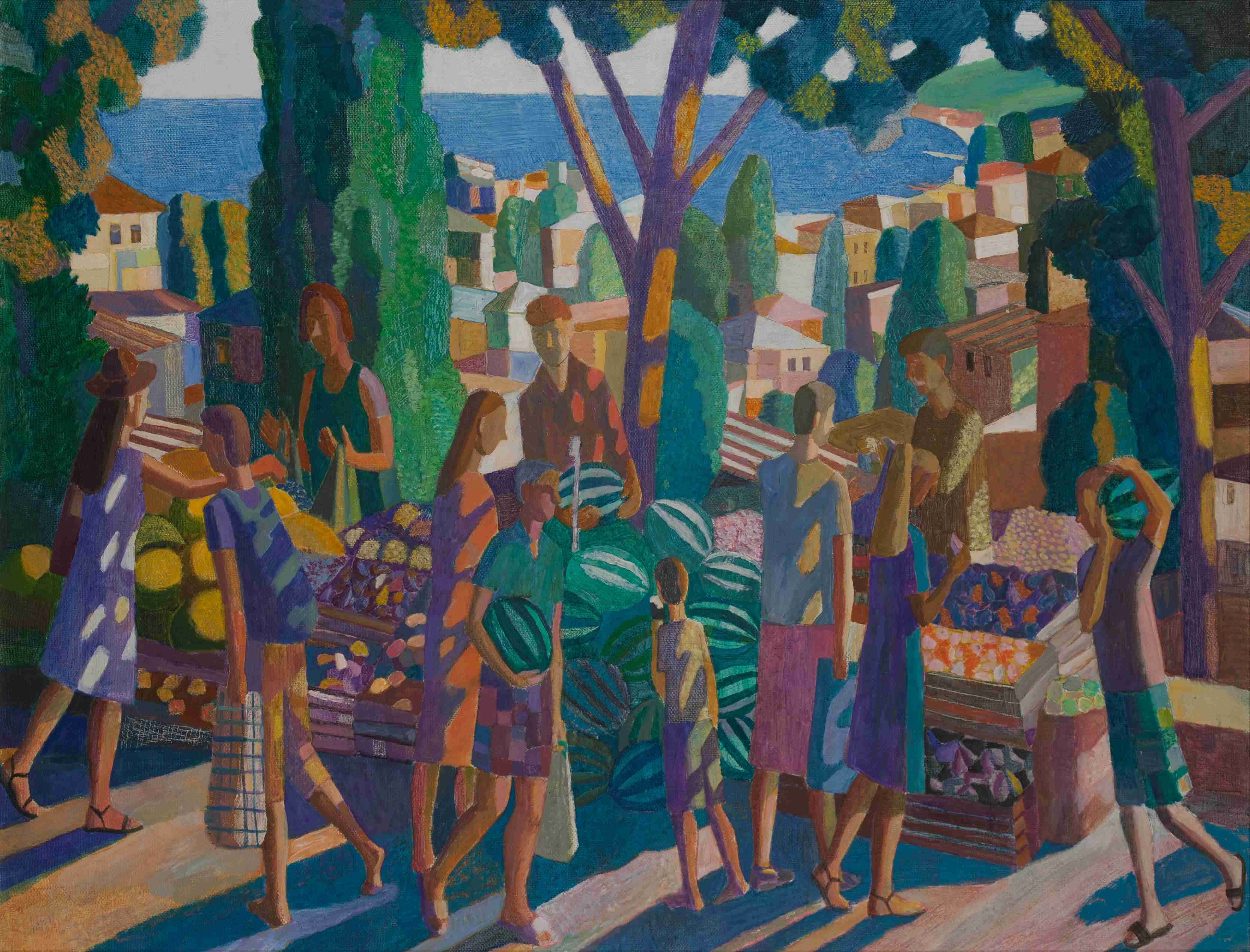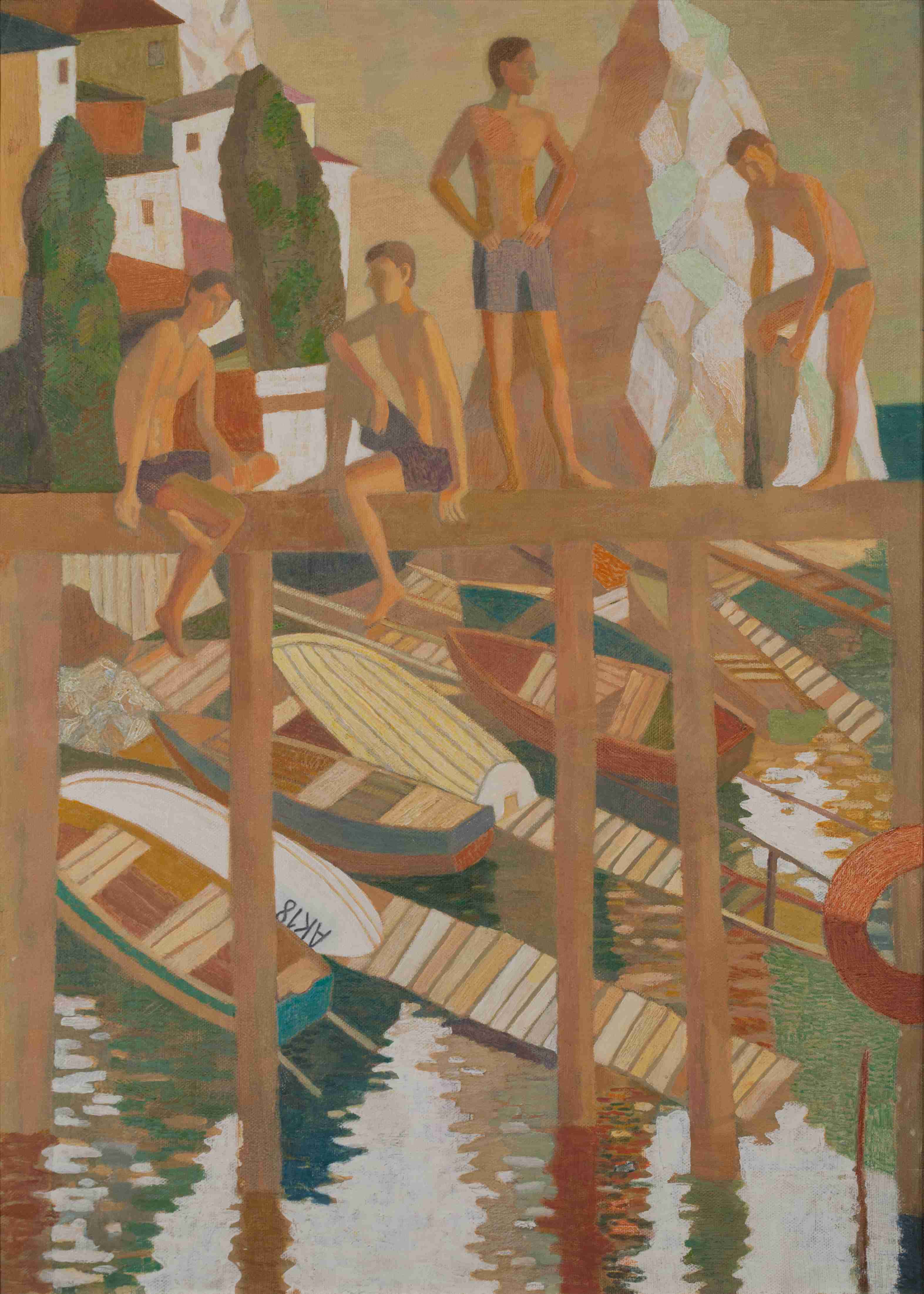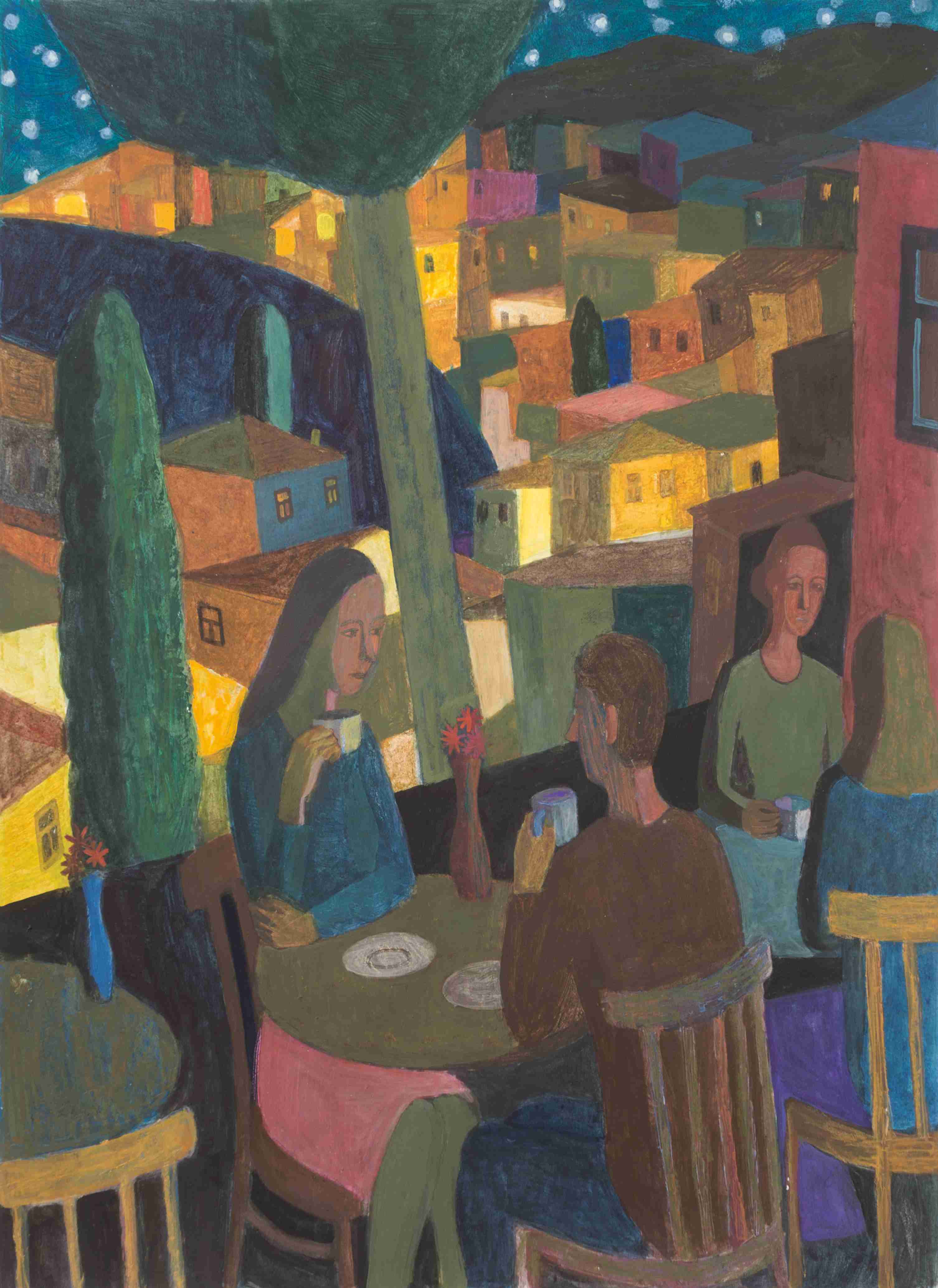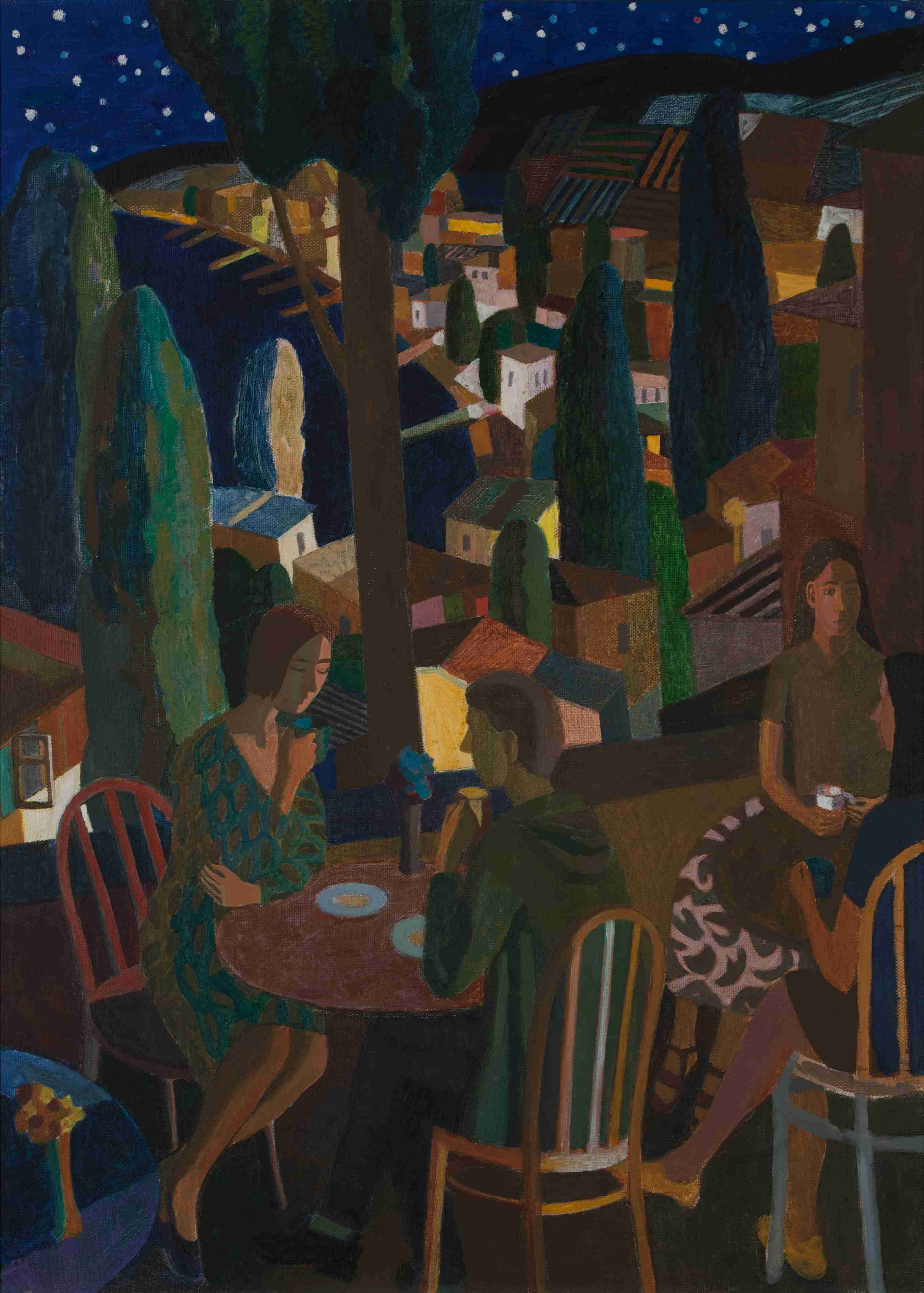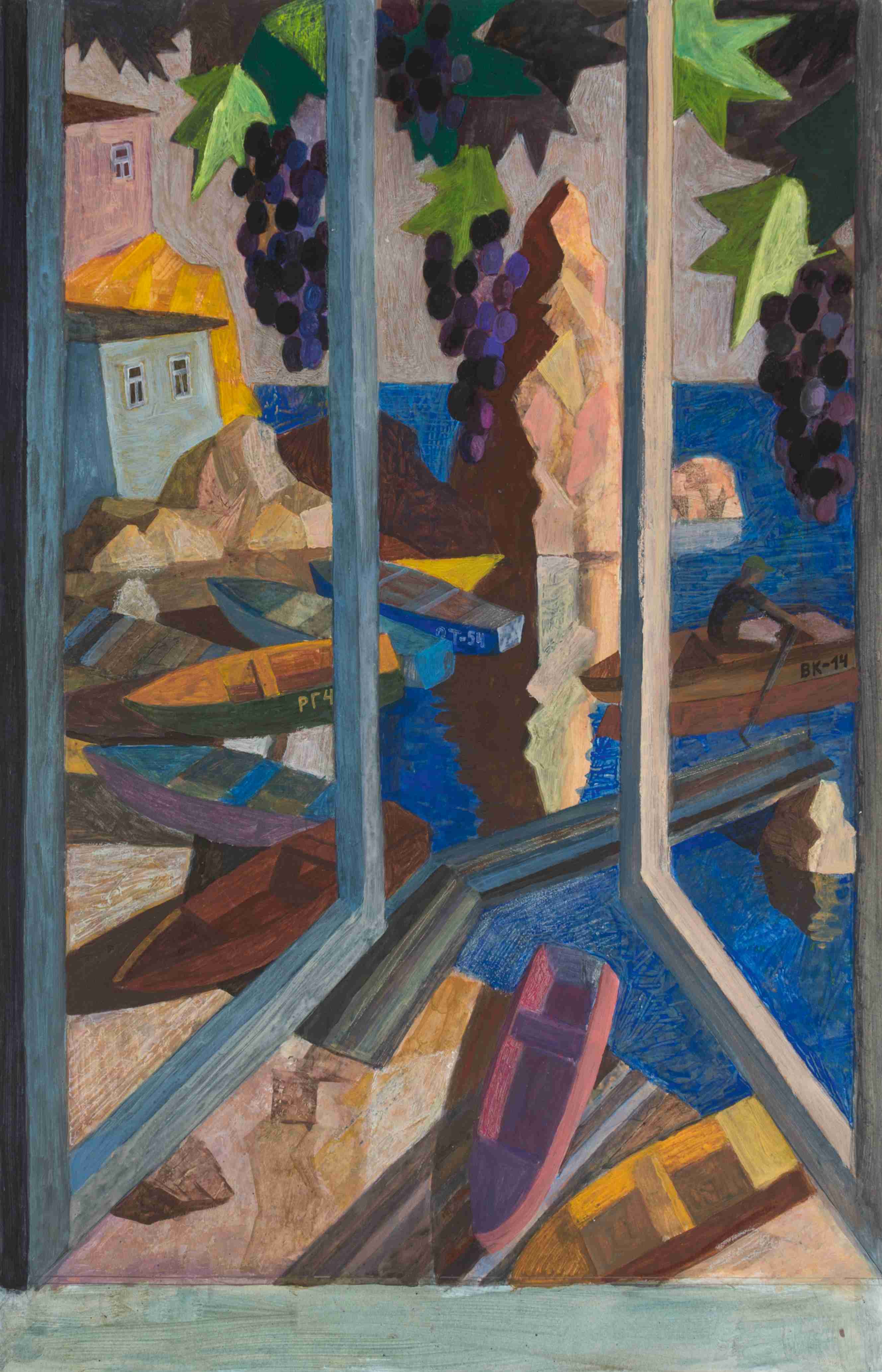 Кипарисы в окне и мачты