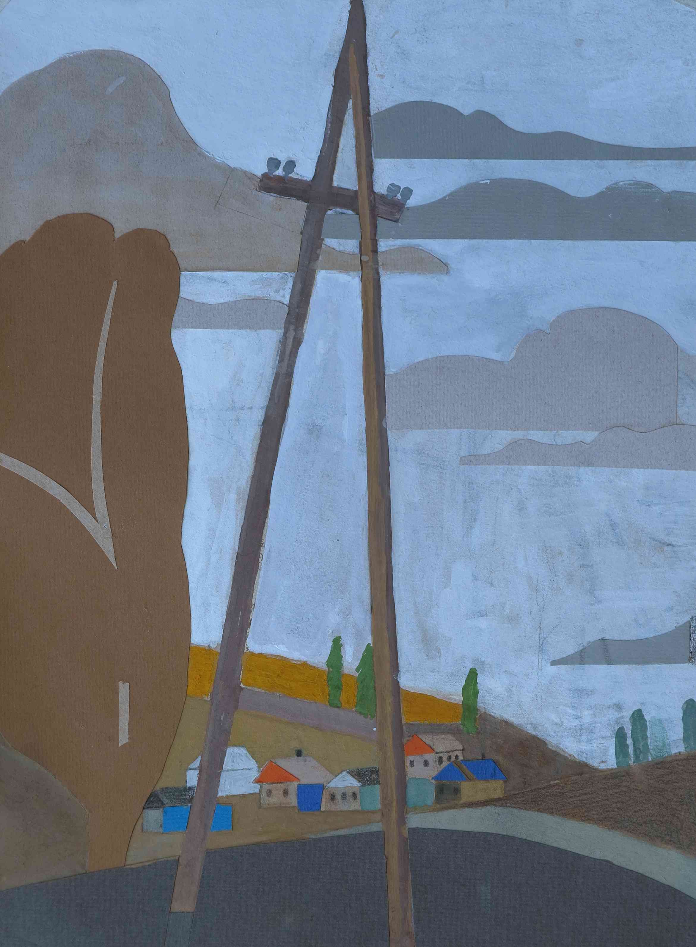 ДЕРЕВНЯ НА ХОЛМЕ И СТОЛБ ЛЭП